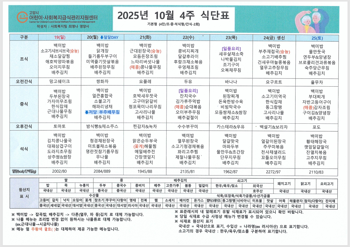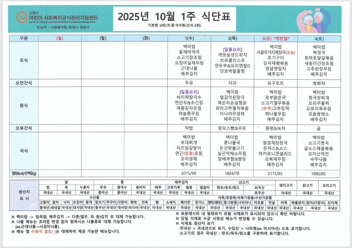 제목 | 2025년 10월 식단표 | 공지일 | 2025.09.30 |
